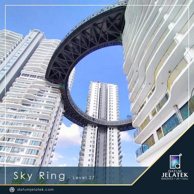 The Sky Ring is inspired by four lily pads that represent the four residential towers, acting as a symbolic ring that links the towers together. It provides a common meeting point for those residing here.